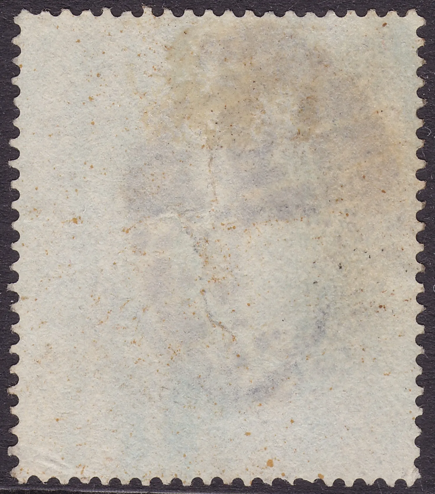 GB QV SG.131 10/- Grey-Green (BD) Wmk Anchor on Blued Paper (Fine Used) with interesting pre-printing error caused by a paper wrinkle leaving a quite noticeable unprinted area from the ear down to the neck, this is the first one I have ever seen on this issue. Superb centering for this issue and good strong colour. SG Cat £5,200