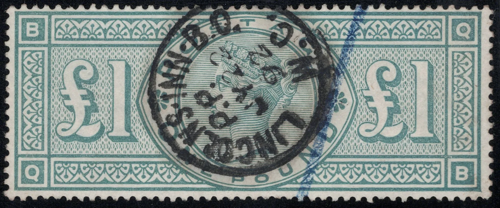• GB QV SG.212 £1 green (qb) sg cat £800