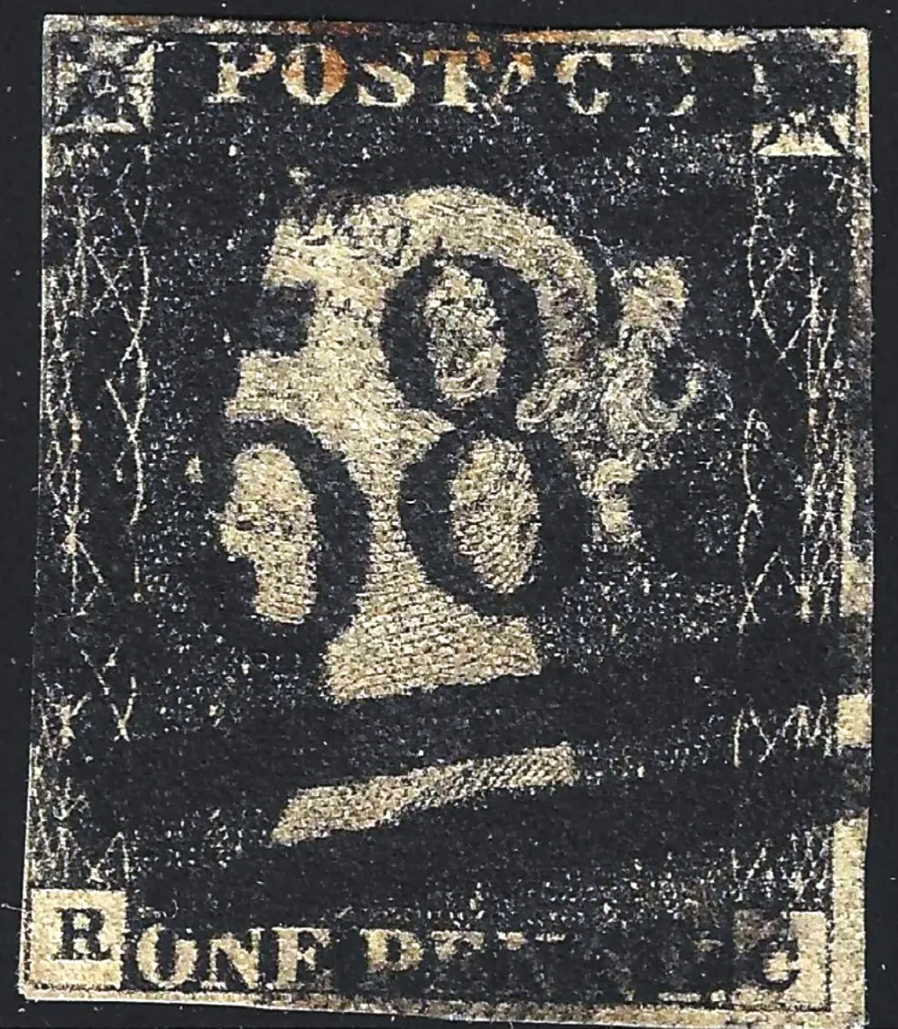 SG.2za 1d Black Plate 2 (RC) with 1844 "583" Barred Oval Numeral Cancel. SG Cat £1,800 A very late use of a 1d Black.