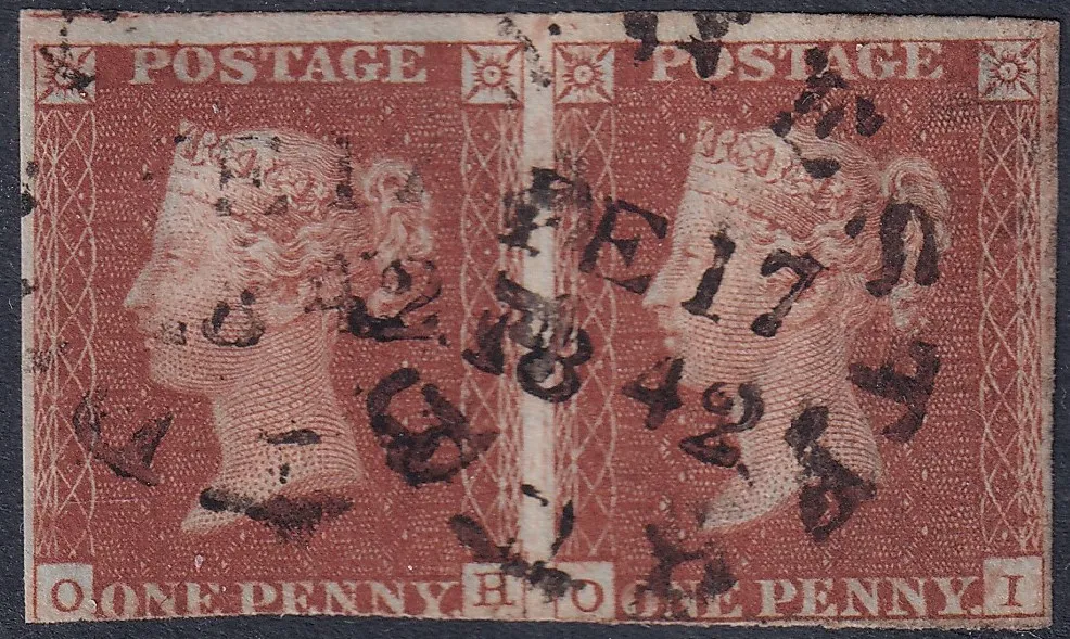 SG.8va 1d Reds Plate 20 (OH, OI) with DORCHESTER Circular Town Cancels. Cancelled only with Dorchester Town Cancels, SG Cat £800 each for a total Cat of £1600. Very seldom seen in multiples.