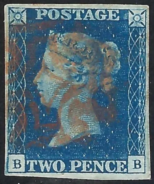 SG5f 2d Blue Plate 2 (BB) with Red Maltese Cross. SG Cat £1,750 with Red Maltese Cross. Plate was issued just a few days before the Red ink period ended and the Black ink period began, scarce thus and a premium item, RPS Certificate.